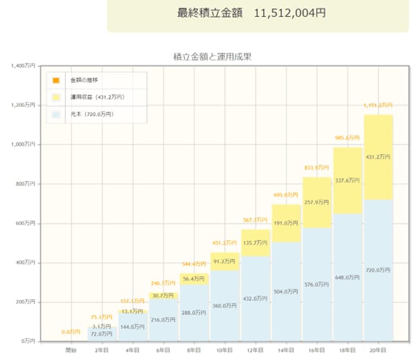 ※本来、信託報酬は日々の基準価額から差し引かれますが、このシミュレーションでは想定利回りの5%から年率の信託報酬を差し引いた計算としているため、実際の数値とは異なる可能性があります。