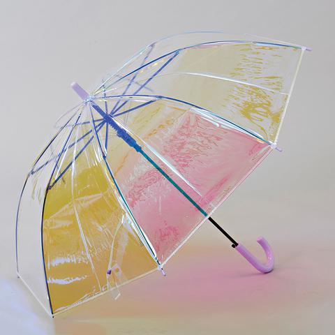 トレンドのきらきら輝くオーロラカラーのキッズ用ビニール傘。雨の日も楽しくお出かけしたくなるアイテム。親子おそろいで持ってもかわいいですね。