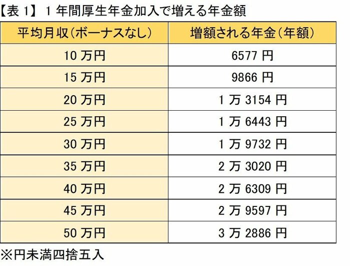 【月収ごとの早見表】1年働くと年金額はどのくらい増えるか