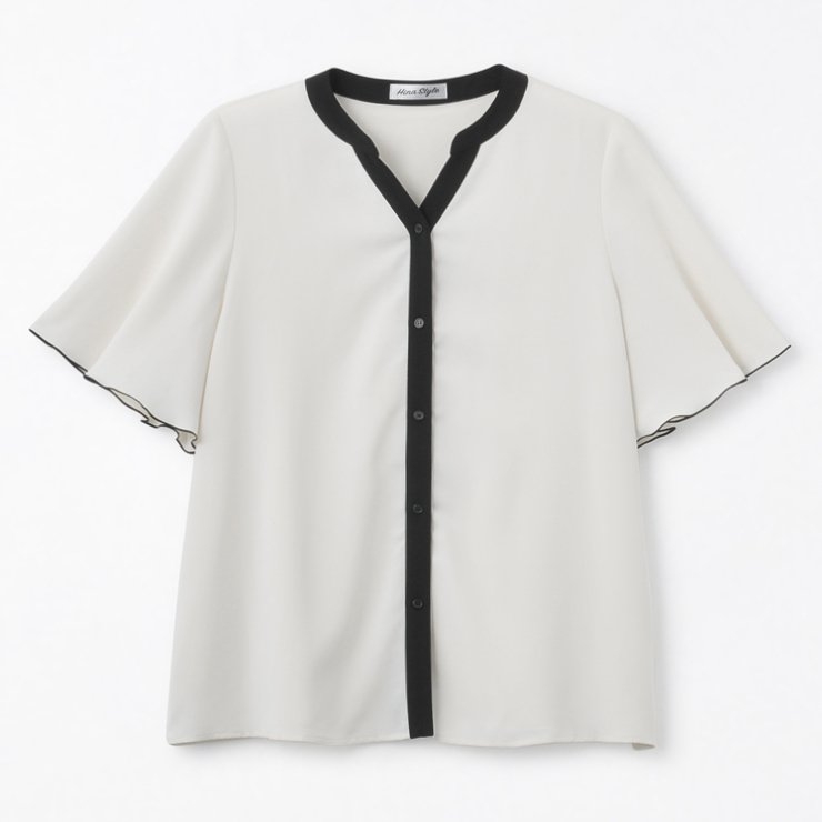 このような配色のブラウスは今年のトレンドでもあります。上品にスカートなどと合わせてみると素敵でしょう。パンツスタイルもフェミニンに決めてくれそうです。