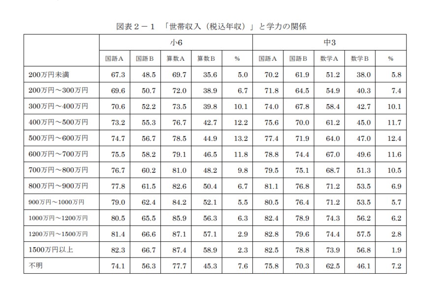 さらに、お金と教育には、「親の世帯年収が高いと、子どもの学力が高くなる」という関係性があります。