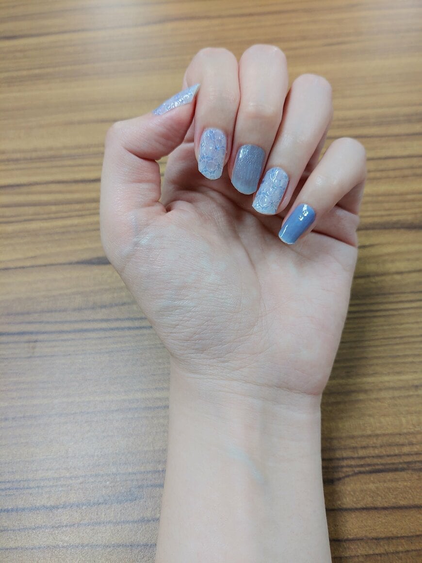 やや爪のサイズに合っていない部分もあるのですが、上々の仕上がりです。事前に、シールの形を整えておくと、もっときれいに仕上げることができるでしょう。
