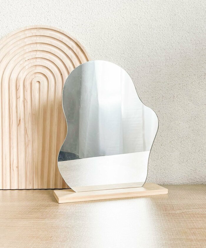 今流行りの韓国風インテリアとして話題を呼んでいる、ウェーブ型のスタンドミラーです。置いておくだけで、お部屋の雰囲気やインテリアを、ワンランクアップさせてくれますよ。顔全体がしっかり映る大きめサイズなので、身だしなみを整えるときや、メイクをするときにも使いやすいです。