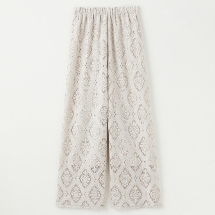きれいめにもカジュアルにも合わせやすいレースパンツです。ふんわりしたデザインなので、遠目にはスカートっぽくも見えます。