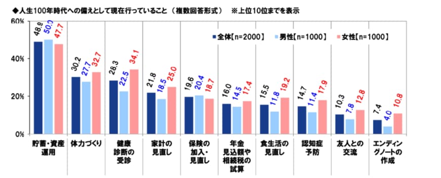 はじめのPGF生命の調査によれば、人生100年時代への備えとして以下のようなことを行っています。