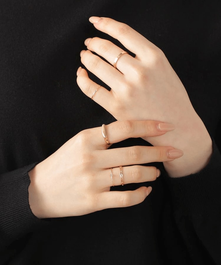 単品で使ってもいいですが、複数の指にいくつもつけてみたり、同じ指に重ねてつけてみたりと、自分好みにアレンジできます。シーンやコーデに合わせて、手元のおしゃれを楽しんでみましょう!