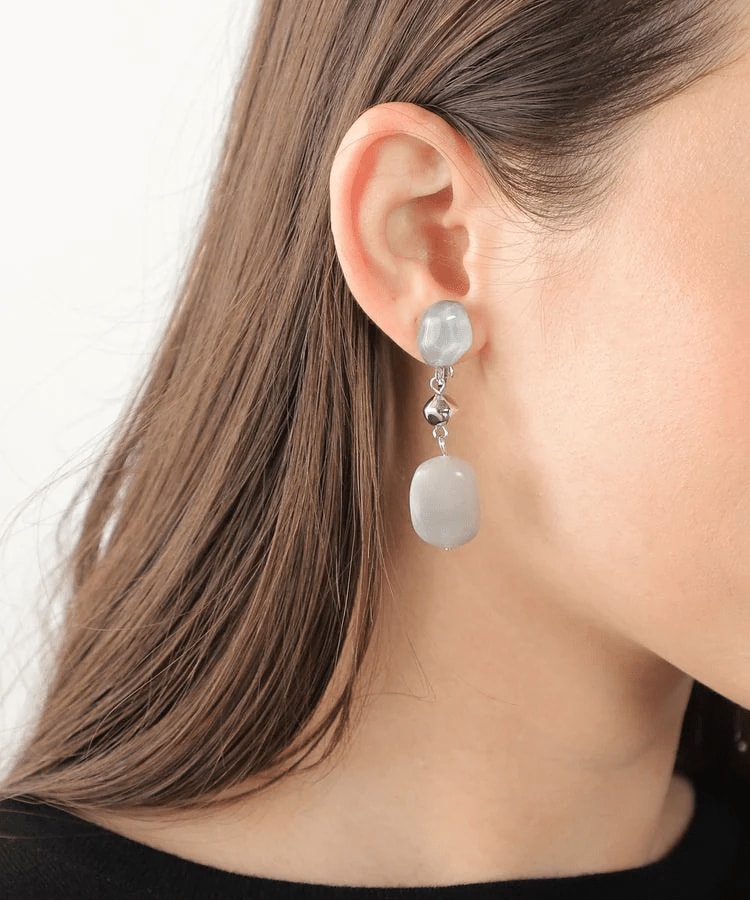 動くたびに大ぶりのストーンがゆらゆらと揺れるスタイリッシュなイヤリングです。画像のブラウンの他にグレーもあります。