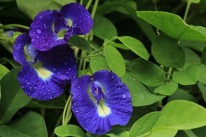 夏空に映えるコバルトブルーの花が美しいバタフライピー。
