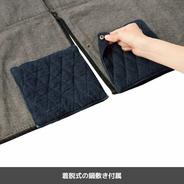 1位に輝いたのは、コットンキャンパー生地のエプロンです。両サイドの大きなポケットの裏には、キルト付きでミトンとして「なべ」をつかめる機能付き。また、キルト付きポケットは着脱式なので「なべ敷き」としても利用できる驚きの仕様です。