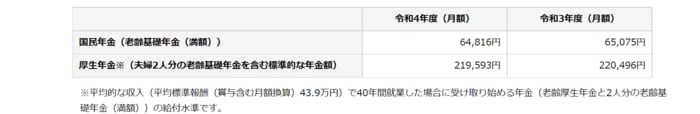 - 厚生年金(夫婦2人分の老齢基礎年金を含む標準的な年金額):21万9593円