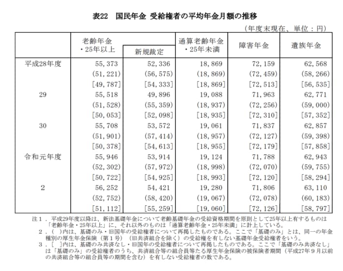 一方で受給権者数も増えており、基礎年金の「老齢年金 ・25年以上」は2016年に3166万人ですが、2020年は3328万人に増加しています。