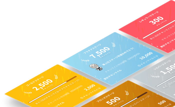 ケンタッキーを利用するたびにポイント「チキンマイル」が加算される『チキンマイレージプログラム 』。この「チキンマイル」は購入金額に応じてポイントが貯まり、マイル数に応じてステージが5段階にアップします。ステージ別のレアクーポンもありますよ。