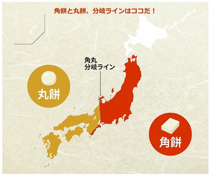 農林水産省によると、四角い餅と丸い餅の境目は「岐阜県の関ケ原辺り」になります。ちょうど境界線上にある、岐阜、石川、福井、三重、和歌山の5県では、角・丸2種類とも使われているところもあるのだとか。
