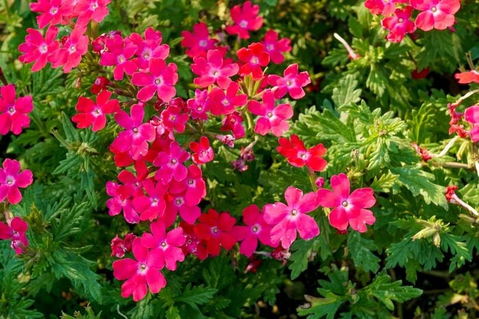 その花姿からビジョザクラとも呼ばれます。一年草や多年草、高性種やほふく性の品種など種類が豊富です。
