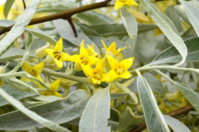 シンボルツリーにオススメなのはロシアンオリーブと呼ばれる落葉性のヤナギバグミと、常緑性のシマグミ。どちらもシルバーリーフがオシャレで、大人っぽい雰囲気です。
