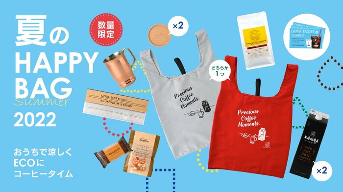発売されるたび注目が集まる上島珈琲店の福袋のひとつ「夏HAPPY BAG」。2022年6月22日(水)より店舗にて販売が開始されました。今回は「おうちで涼しくECOにコーヒータイム」にピッタリなアイテムがそろいました。