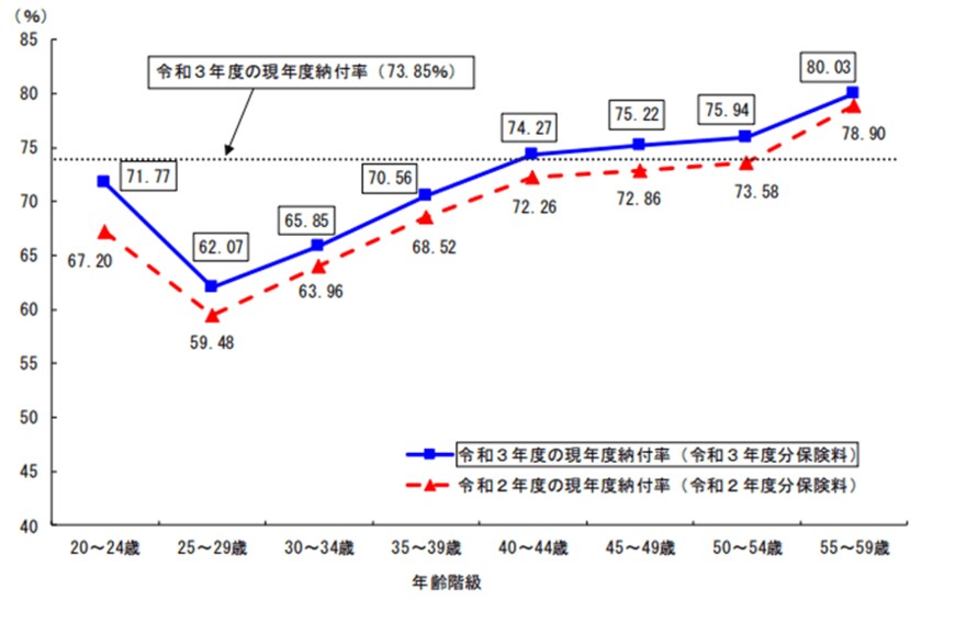 2. 【年齢別】国民年金保険料の納付率をグラフでチェック