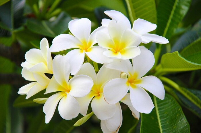 プルメリアはレイの素材にもよく使われる花。甘い香りを持ち、白やピンク、黄色とカワイイ花色が揃っています。光が不足すると徒長して花が咲きません。できるだけ日差しのある明るい場所で管理するのがオススメです。※参考価格:3000~4000円(4号鉢)