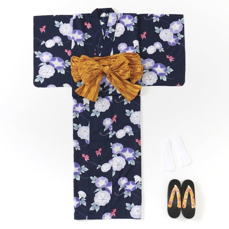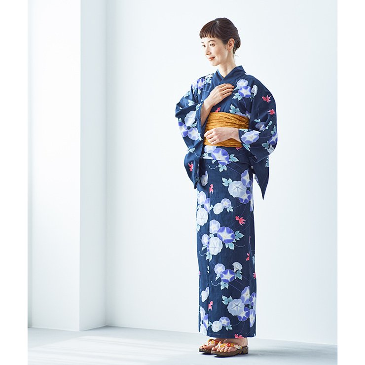 浴衣全体に、かわいい朝顔が印刷されています。ですので、ダークネイビーといえど、それほどシックな印象にはなりません。着る人によって、大人っぽくもかわいくも見える浴衣でしょう。