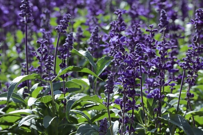 春から晩秋にかけ、1センチほどの青い小花を穂状に咲かせるブルーサルビア。サルビアの一種で半耐寒性の多年草ですが、寒さに弱く越冬できないので一年草として育てます。