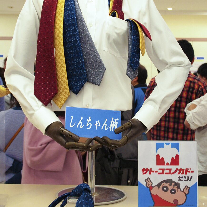 クレヨンしんちゃんの限定グッズも扱われています。催事場コーナーでは限定ネクタイの予約が行われ、飛ぶように売れていきます。筆者も黄色のネクタイを注文しました。