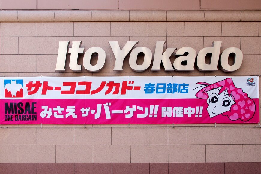 確かに「サト―ココノカドー」です。ここはイトーヨーカドー春日部店ですが、この企画のために屋上の看板を替えて対応するという熱の入れようです。真面目に「シャレ」に取り組んでいて、なんだかほほえましくなります。