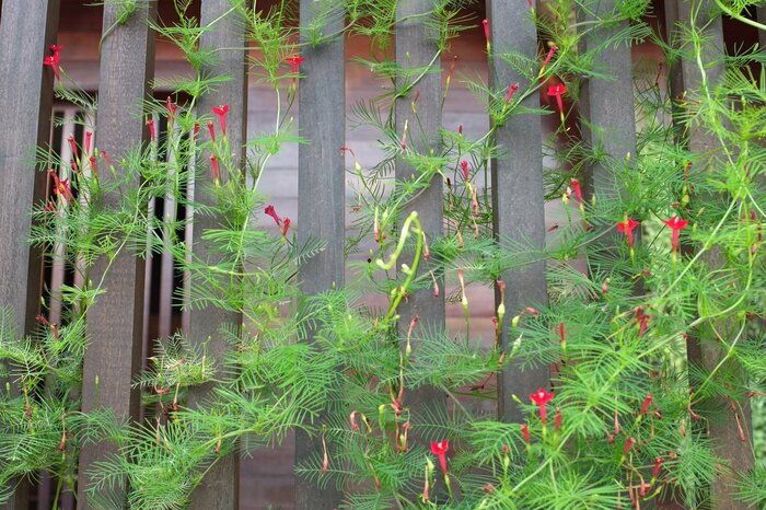 植物を這わすネットはグリーンカーテンを作る場所に合わせて工夫しましょう。物干し竿を利用する、2階から垂らす、突っ張り棒でネットを張る、自立式トレリスを利用する、などの方法があります。