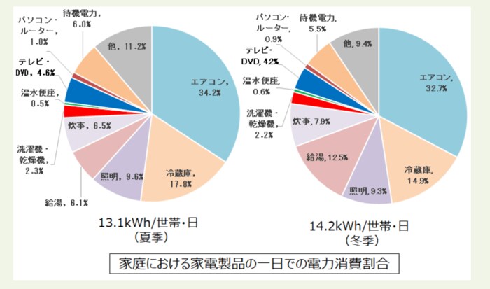 夏の家庭における家電製品の一日の電力消費割合とは