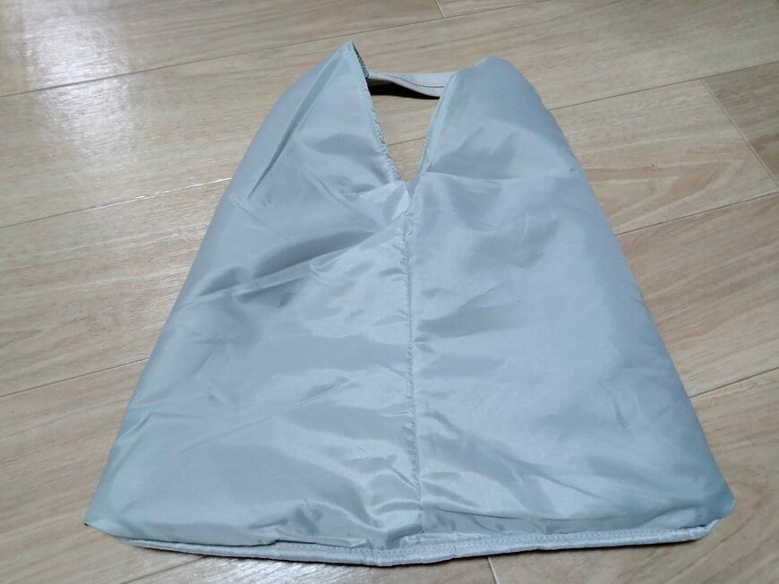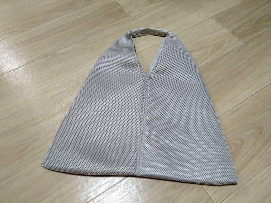 早速、スリコで実物を購入しました。ブラックは売り切れのようで、グレーをゲットしました。実物を見たところ「そんなに似てはいないかな」と、率直に感じました。よくある三角バッグという感じです。