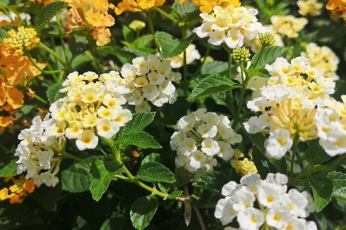 いくつもの小花を集合させ、ボールのような花房をつくるランタナ。樹高1~2メートルのランタナ・カマラと、樹高30センチ前後でほふく性があるコバノランタナが主流で、いずれも春から秋にかけて開花します。