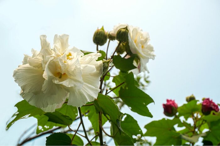 夏から秋にかけてハイビスカスのような花を咲かせるフヨウ。樹高2~3メートルの落葉低木樹です。