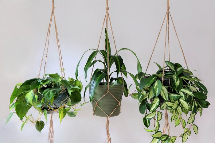 大きな植物は重さで落下してしまうかもれません。落下すると危ないので、ハンギングには小型サイズの植物がオススメ。