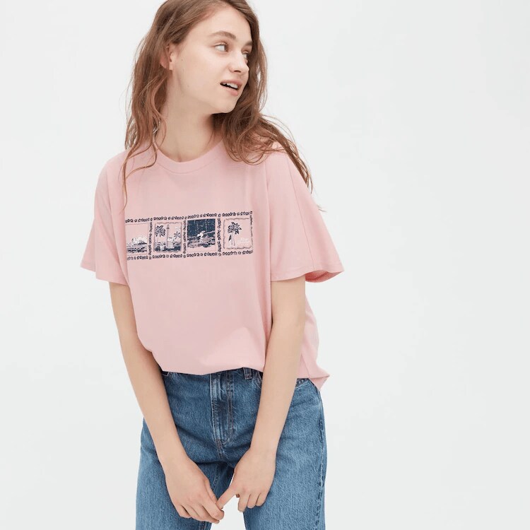 1. 【ユニクロ】4コマ漫画のようなデザインがかわいい! ピンクTシャツ