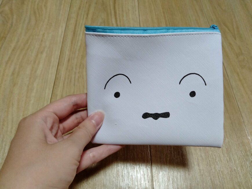 こちらは、シロの顔が全面プリントされたものです。シロの首輪といえば「青」ですが、それに合わせてファスナー部分が「青」になっているところに、原作への愛を感じました。シンプルなデザインながら、インパクトがあって素敵ですね!