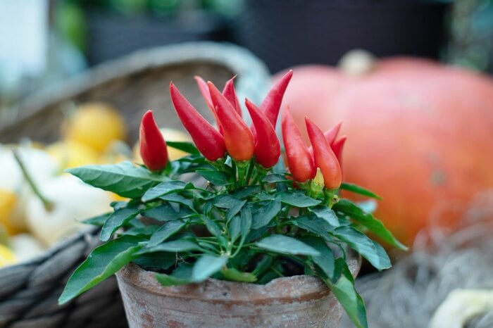 ロフォミルタスと組み合わせるなら、クリーム色や赤紫、青紫の植物がオススメ。さまざまな実の色が楽しめる観賞用トウガラシは、庭植えや寄せ植えにしてもオシャレですよ。※参考価格:800~1000円前後(3.5号ポット苗)