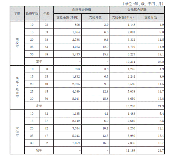 大企業については、中央労働委員会「令和3年賃金事情等総合調査」において、学歴別の退職金が集計されています。