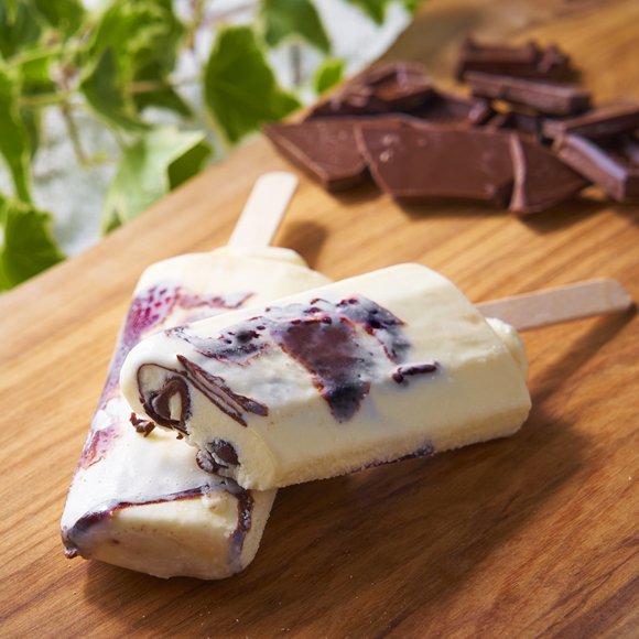バニラアイスの中に、パリッと食感のスイートチョコを折り重なるようにあしらっており、ミルク感がアップしたバニラアイスをよりクリーミーな食感にしあげています。チョコの入れ方を工夫することで一口目から軽快な板チョコ食感が楽しめ、食べ進めることで変化するチョコを最後までおいしく味わえるアイスです。