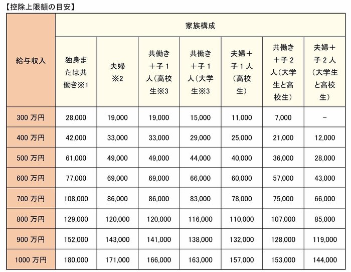 控除上限額は年収や家族構成、その年に受ける各種控除の金額によって異なります。