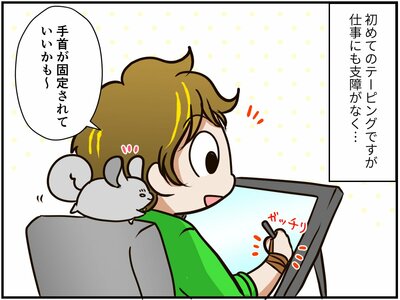 今回はチンチラのあみだちゃんのお話。漫画家というお仕事柄、利き腕にトラブルを抱えやすい祭さん。腕にテーピングを巻いている祭さんを見て、あみだちゃんがとった行動とは?