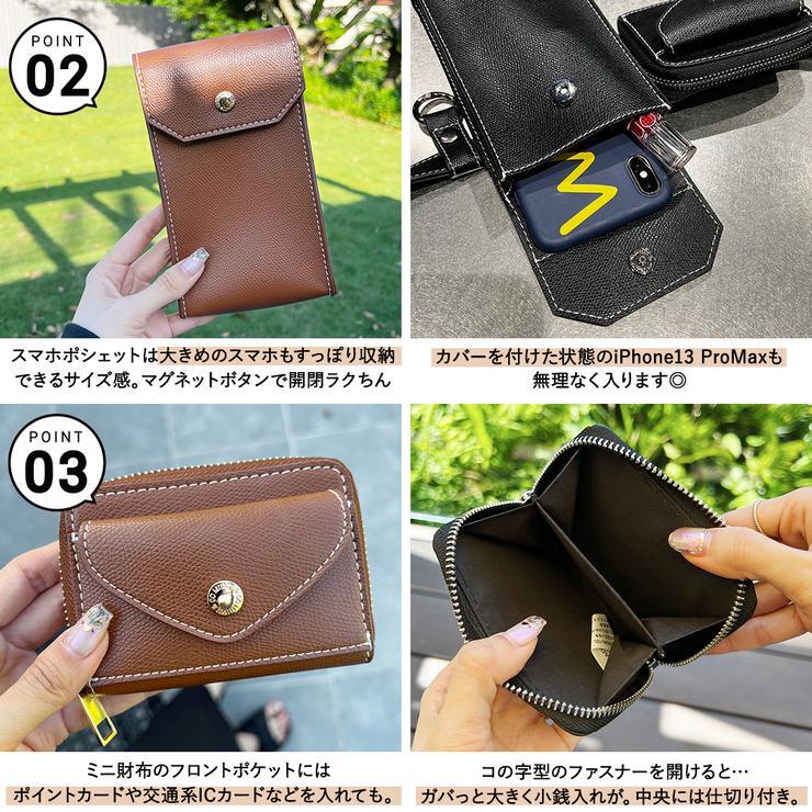 こちらはミニ財布ではありません。しかし、ミニマリストならば持っておきたい、ショルダーバッグです。スマホケースとコインケースをベルトに装着できる仕様なのが便利。お値段は、1790円(税込 1969円)で、画像のブラックの他にブラウンもあります。