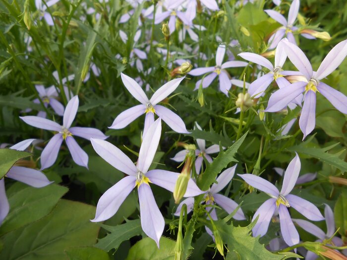 星形の花がかわいいイソトマは、春から秋まで長く楽しめる花。ローレンティアという名前でも出回ります。株がよく広がって鉢を覆い、華やかな寄植えにしてくれます。白、ピンクなどの品種がありますが、この組み合わせでは青や紫がオススメ。※参考価格:100〜300円前後(3号ポット苗)