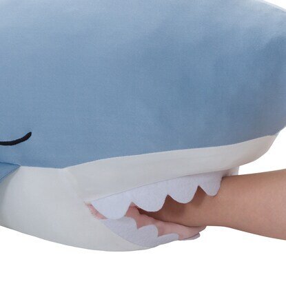 子ザメは手に持って遊ぶのにちょうどいいサイズで、親ザメの方は抱き枕にしたりクッション代わりにしたりするのにぴったりなサイズ。