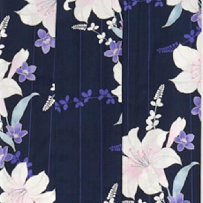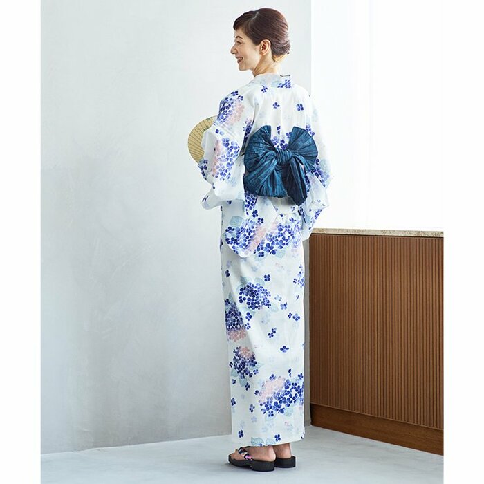 ・サイズ:(浴衣)身丈163cm、そで丈49cm、ゆき丈67cm、(適応身長154cm~168cm)、(帯)長さ約350cm、(下駄)サイズ目安24cm、(腰ひも)長さ200cm
