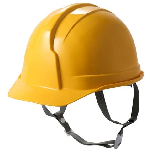 定番の形のヘルメットです。正式名称は、ABSツバ有りヘルメット スチロール入り。カラーは、黄色と白の2色があり、お値段は1342円です。電工用としても使われているヘルメットなので、規格などもしっかりしています。