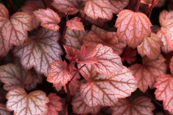 カラフルでユニークな葉が人気のヒューケラ。別名「ツボサンゴ」とも呼ばれています。ビビッドな色からシックな色までさまざまなカラーがあり、草丈も20~50センチと豊富。