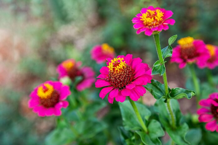 夏~秋と花期の長いジニアも、ライムカラーからスモーキーカラーまで幅広く、可愛らしい花姿でありながら派手にならず落ち着いた印象に。