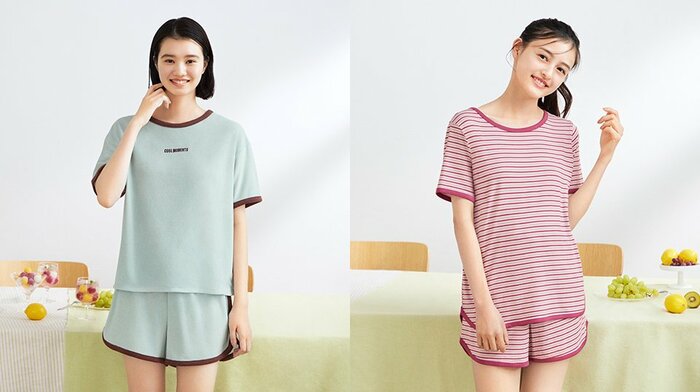 また、現在ジーユーのラウンジウェアと「アイスの実」がタッグを組んだキャンペーンを実施中です。夏のおうちの時間も、ひんやりとした肌ざわりのラウンジウェアなら楽しく過ごせそうですね。