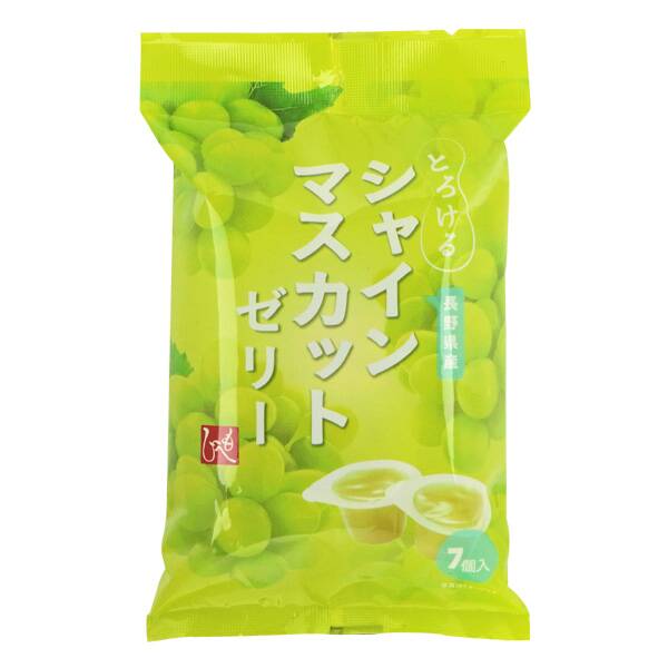 長野県産シャインマスカット果汁を使用したゼリーです。とろけるような食感と、フルーティーでみずみずしいシャインマスカットの贅沢な味わいが楽しめます。