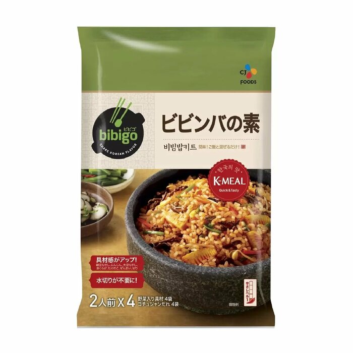 具材と特製コチュジャンのたれが2人前ずつ個包装されています。具材を温めたり水切りしたりといった手間は必要なし。ほかほかご飯にそのまま混ぜれば、あっという間に本格的なビビンバができあがります。