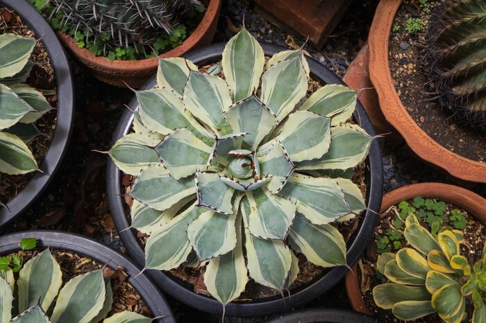 真夏の水やりは時間帯とタイミングがポイントです。夏型の品種は土がカラカラになっていたら気温が下がる時間帯に、鉢底から水が染み出るまでタップリと与えましょう。